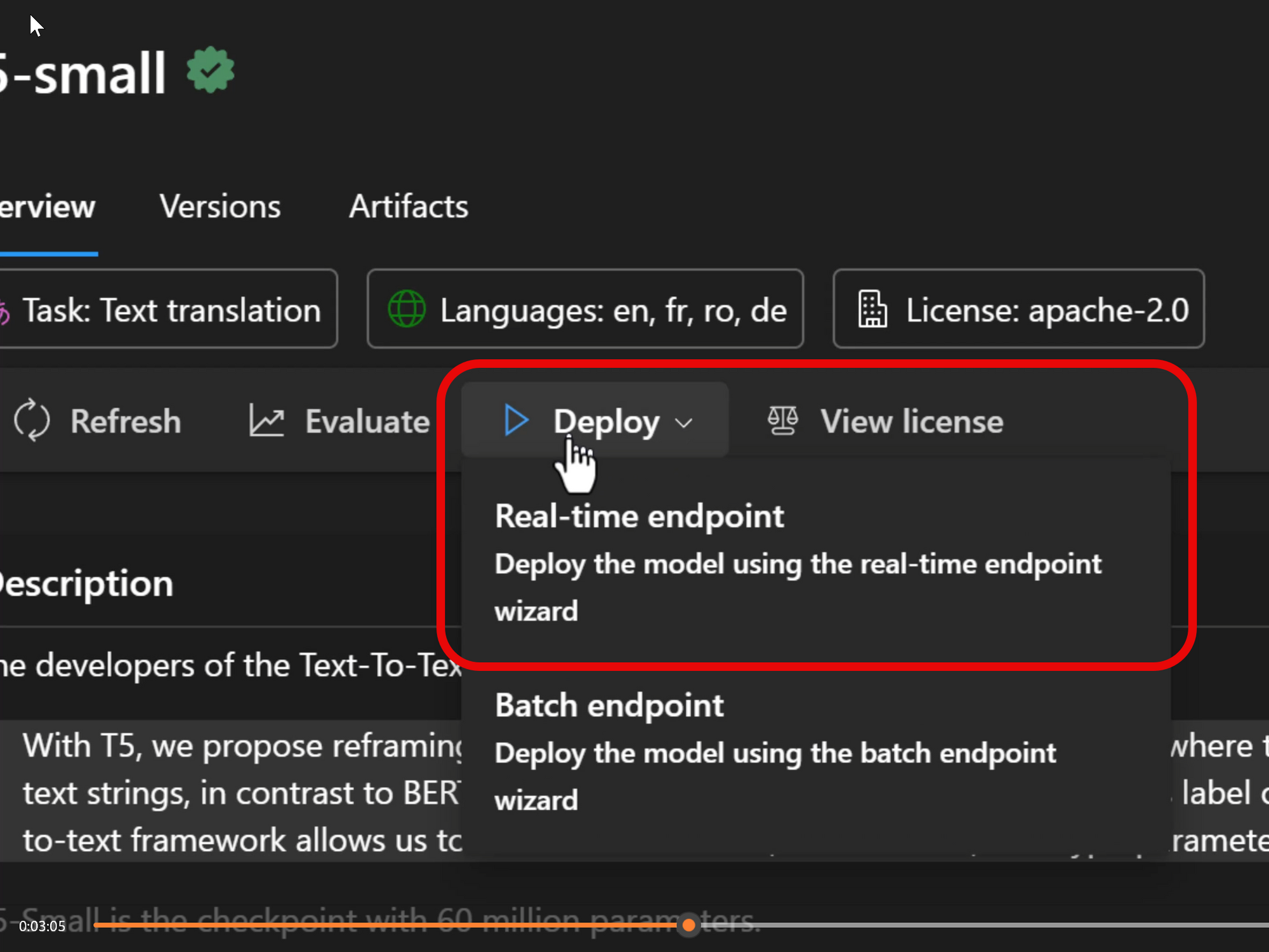 - Deploying a model and endpoint from a cloud provider Model Catalog, such as Azure, AWS or Google Cloud