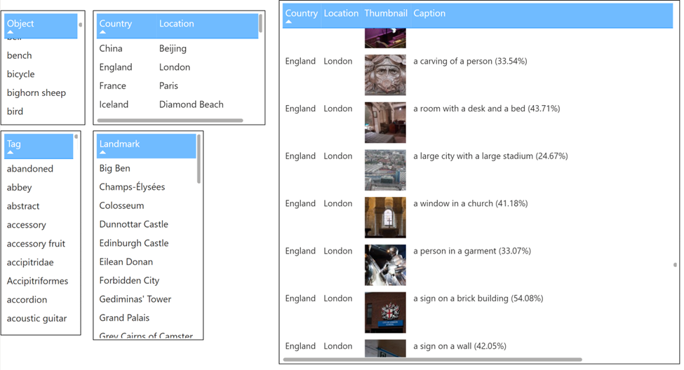 In this post I'll detail a solution that uses Image Analysis to extract tags, categories, landmarks and descriptive text from a library of images. I'll also use Image Analysis to generate thumbnail images that place the main image subject in a prominent position and extract a list of objects found within each image.