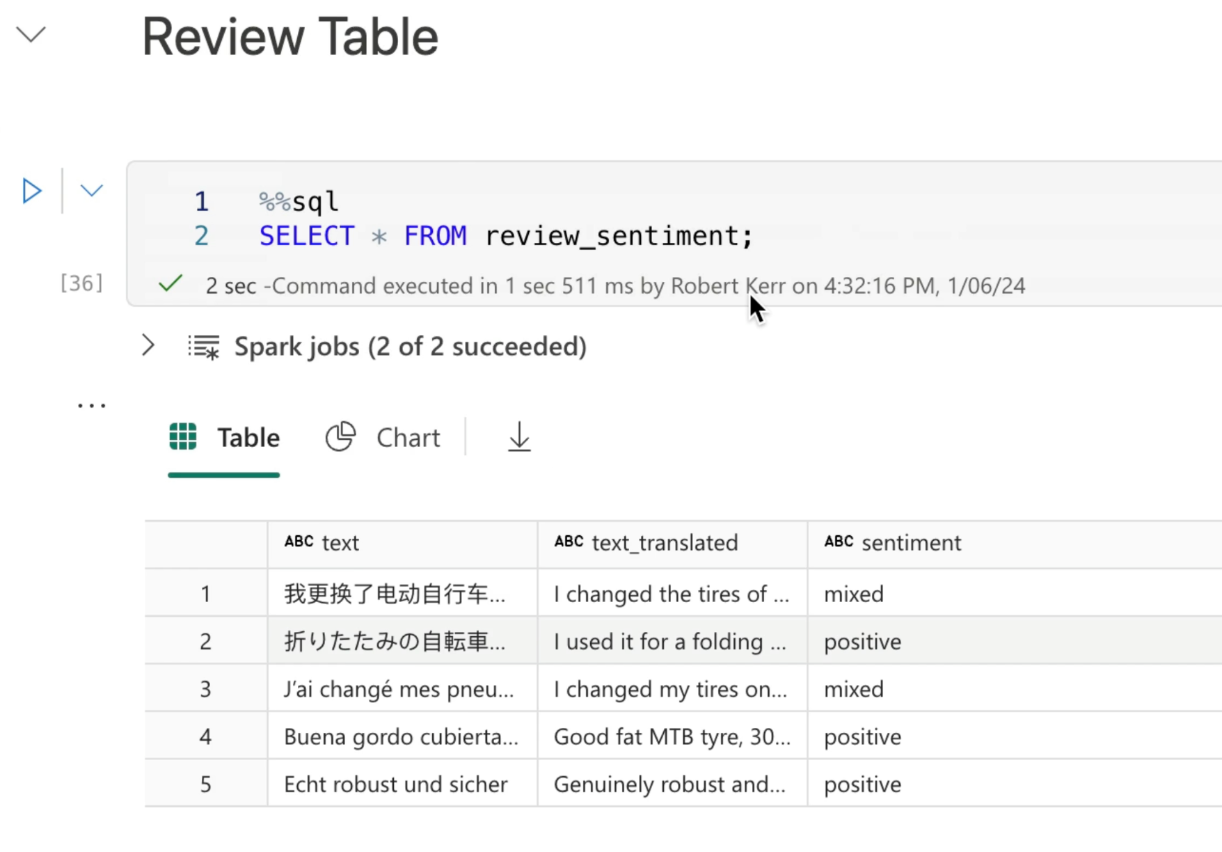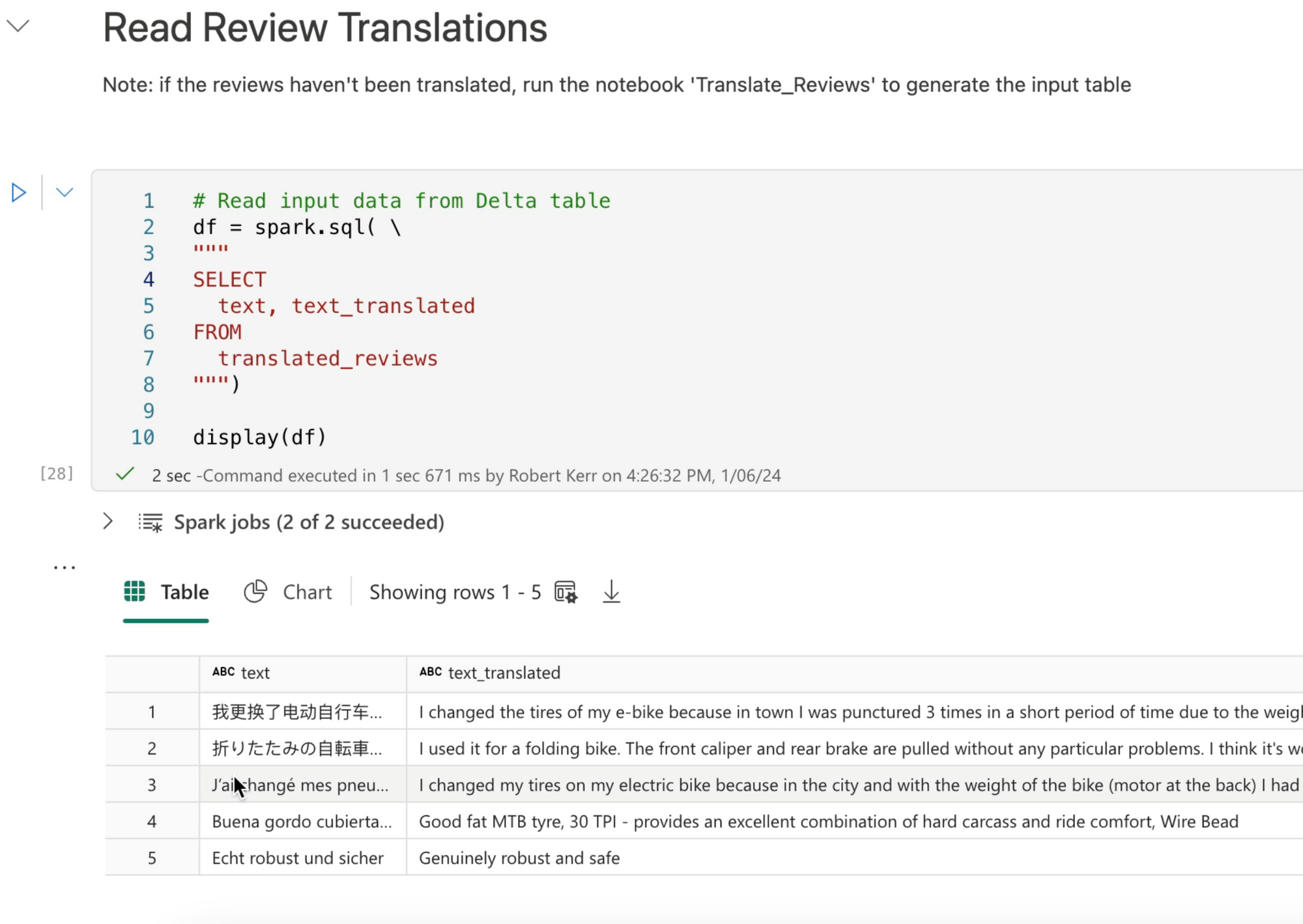 The translation of data was the output of a previous post on language translation in Microsoft Fabric notebooks.