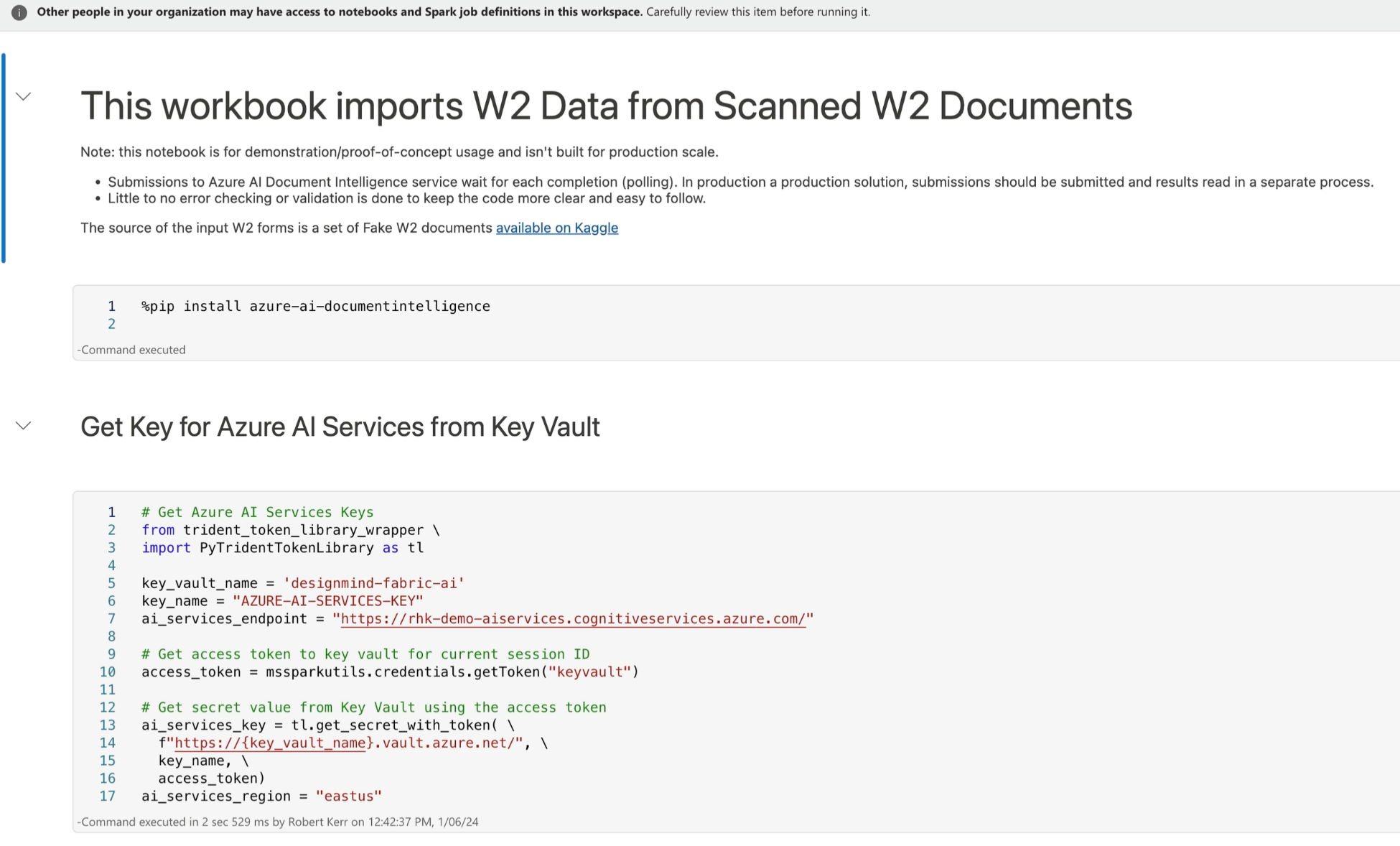 When this cell completes, the Azure AI key will be stored in ai_services_key session variable. This assignment is the result of the call to the get_secret_with_token(...) API call.