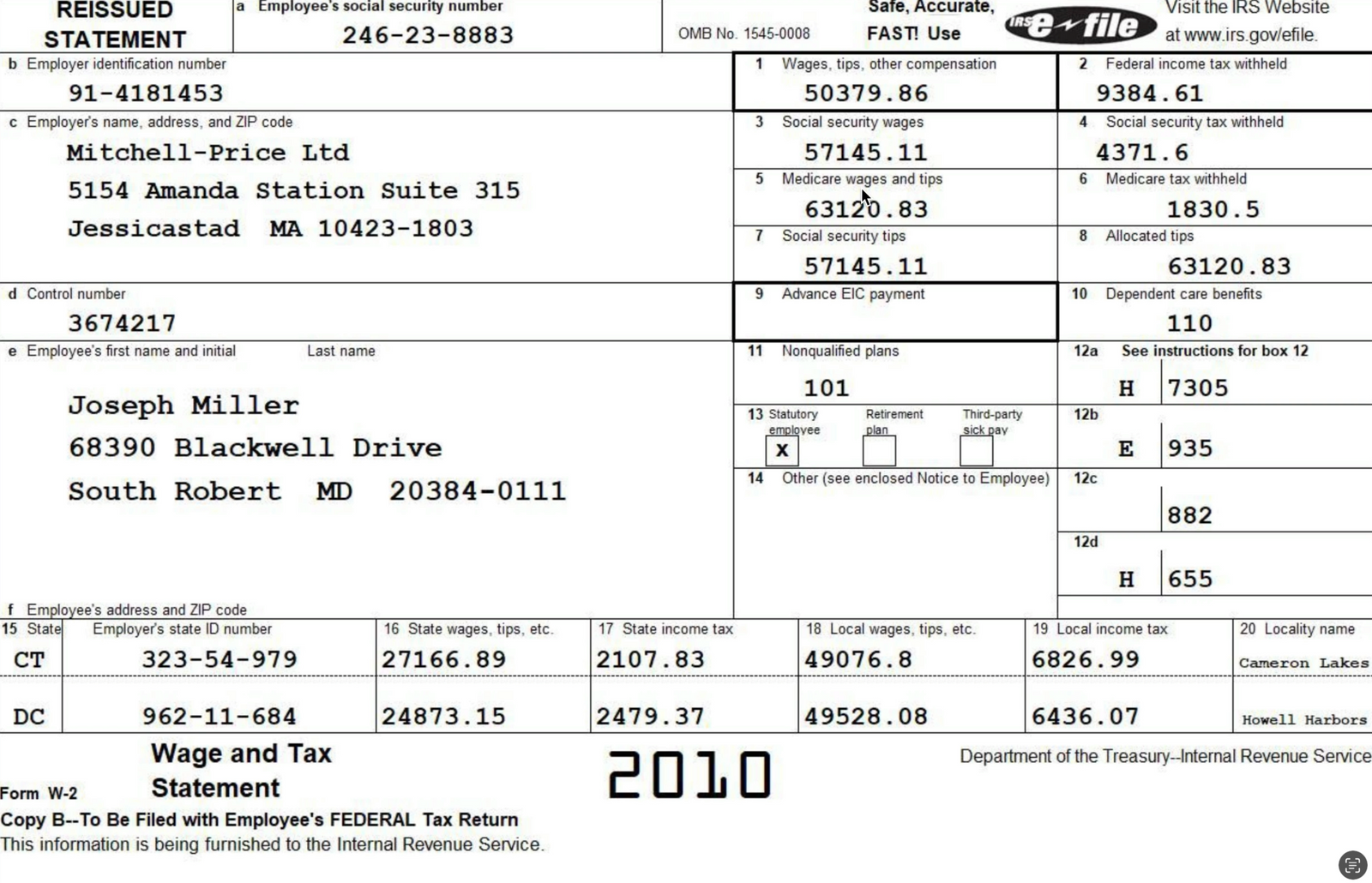 Here's an example of a W-2 like the ones we'll use as input for the solution: