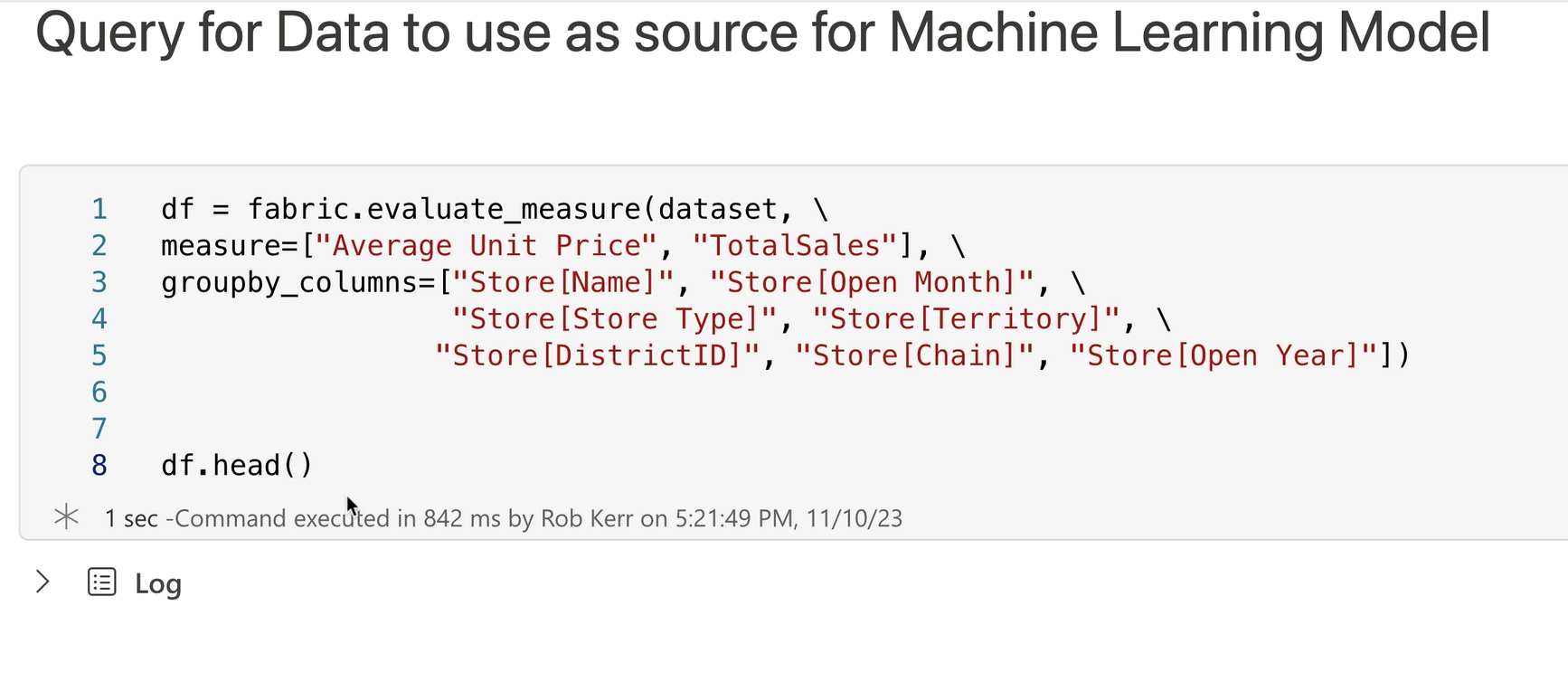 Next, we can query the Power BI data model to extract data to use in building a Machine Learning model.
