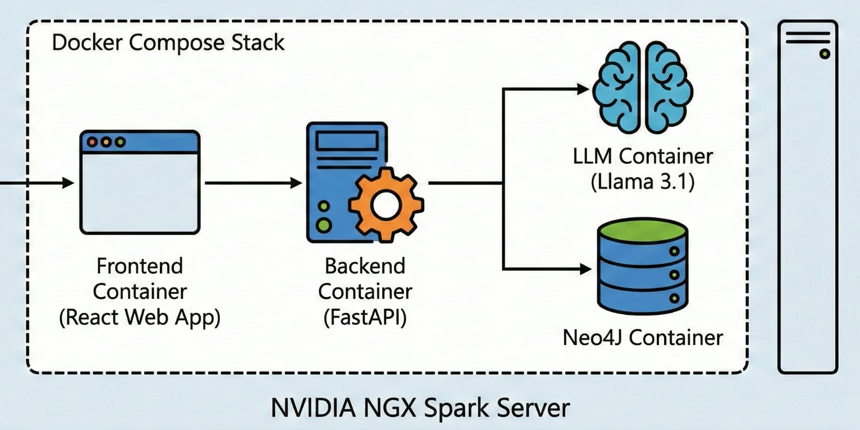 - The backend is a FastAPI REST service that leverages the Llama LLM and Neo4J to answer user questions, while the front end is a Next.js web app that has a single chatbot page.