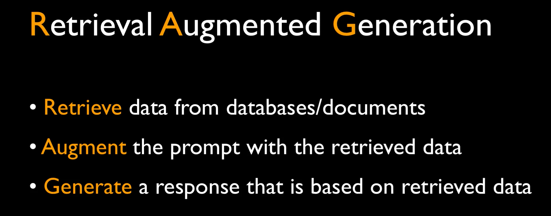 I assume you know what RAG is: Retrieval Augmented Generation. The RAG concept is that we go into our databases or document stores and pull out the grounding data that’s most relevant to a user input, add the retrieved content to the LLM prompt, and the LLM can use the grounding data to help generate a more informed answer to the prompt.