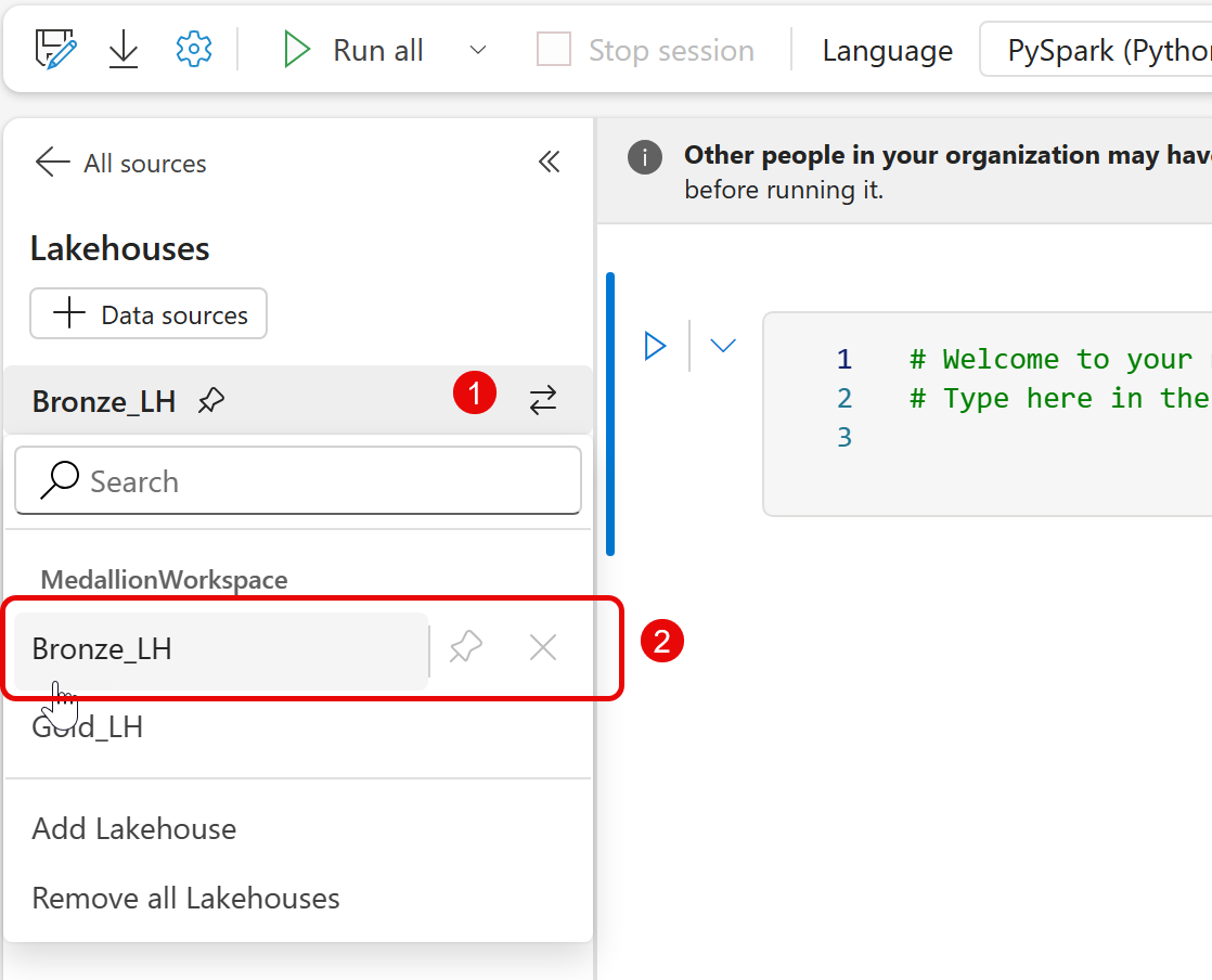 Add Bronze and Silver Lakehouses to the Notebook