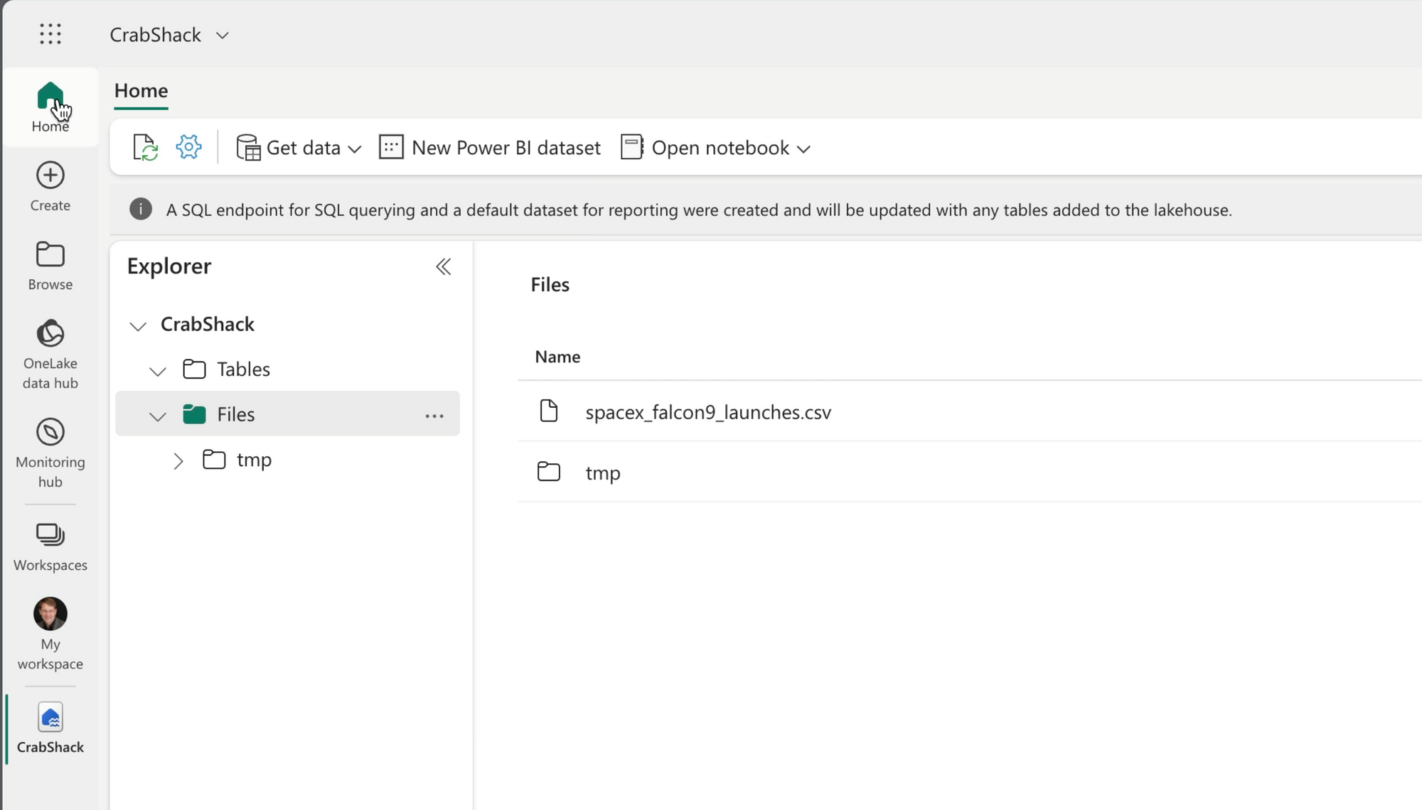 The existing Jupyter notebook fetches data from an Azure blob container--and while I could continue to do this, I chose to import the .csv file into the file folder of my Fabric Lakehouse.