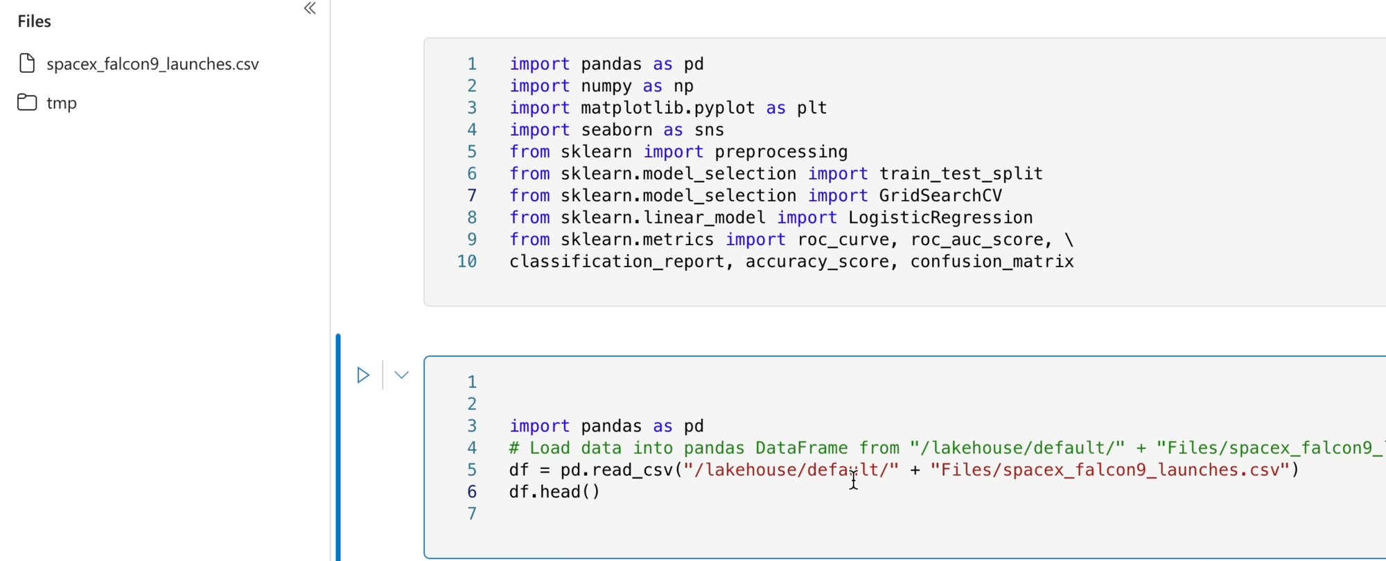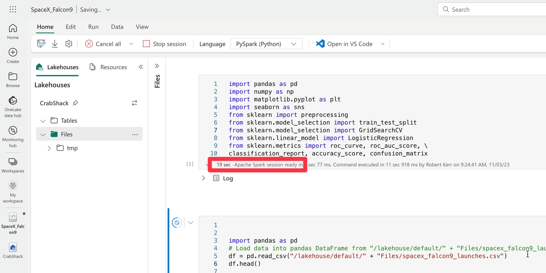 Since I want to use the Lakehouse version of my SpaceX input data, I need to change the notebook to fetch the CSV file from that location rather than the Azure blob container.