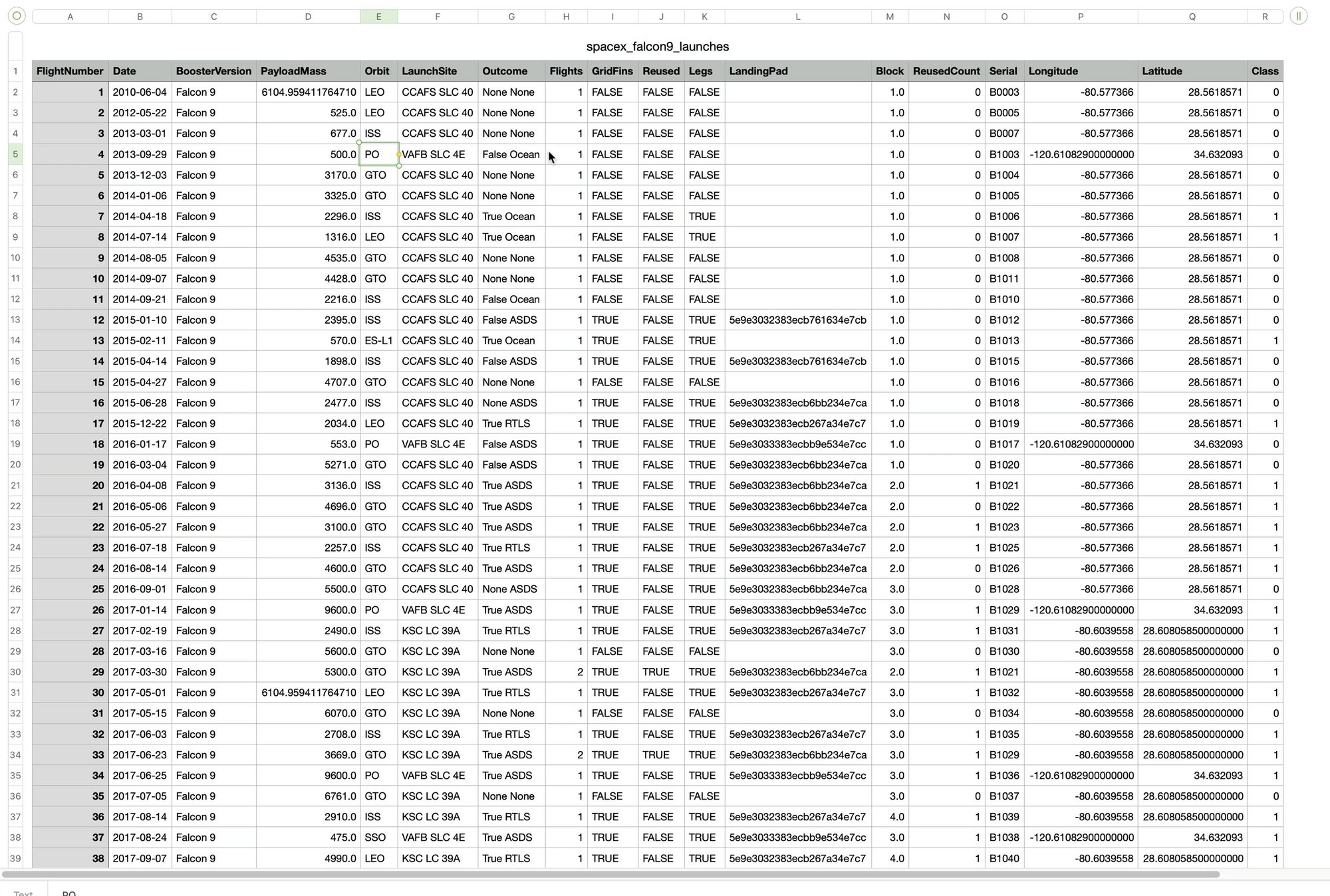 - The source data. In this case a CSV file of SpaceX Falcon 9 launches