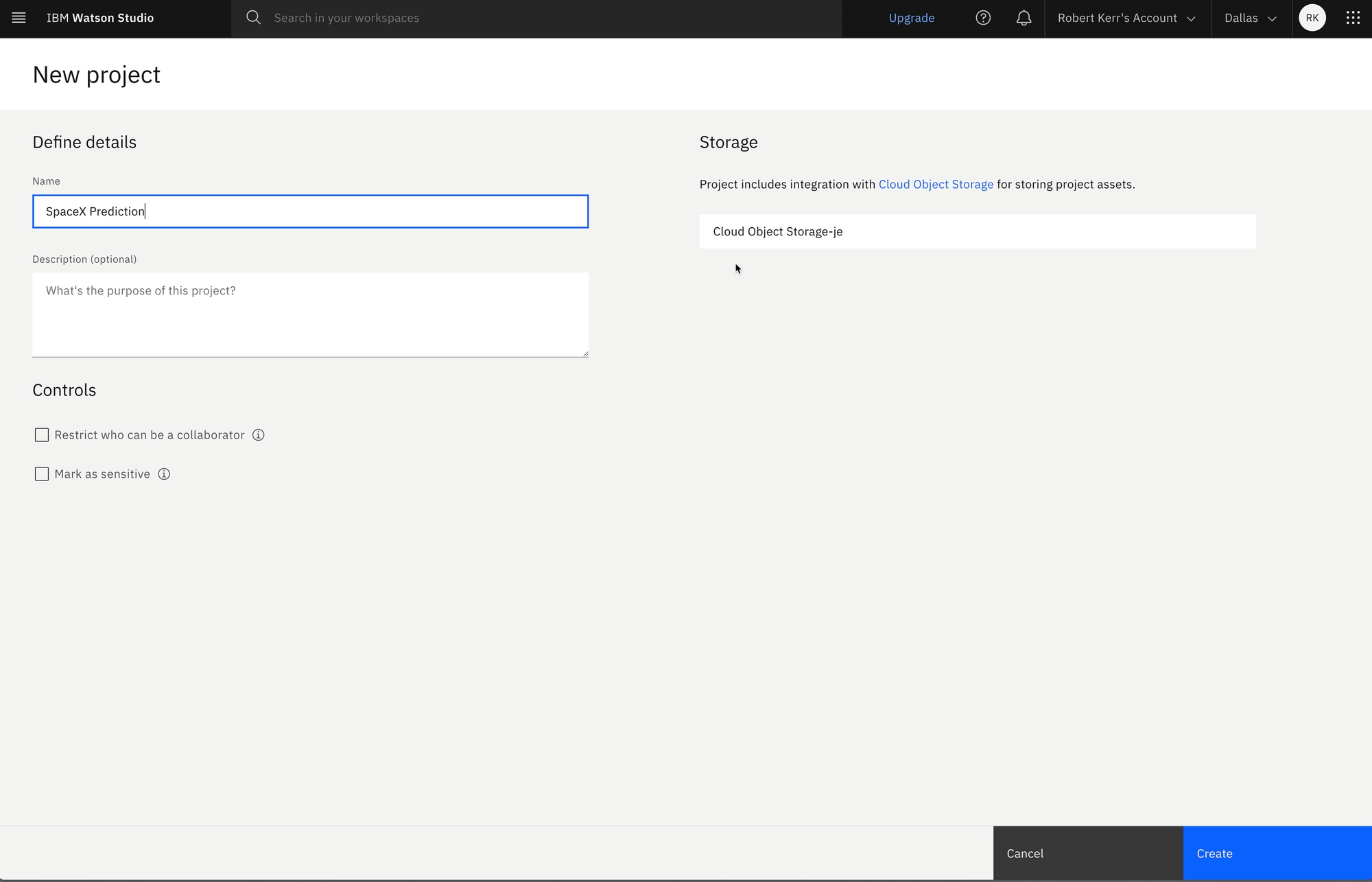 In a Watson Studio project, the notebook is an asset, and we next create a new notebook within the project. The notebook becomes an object in the default container.