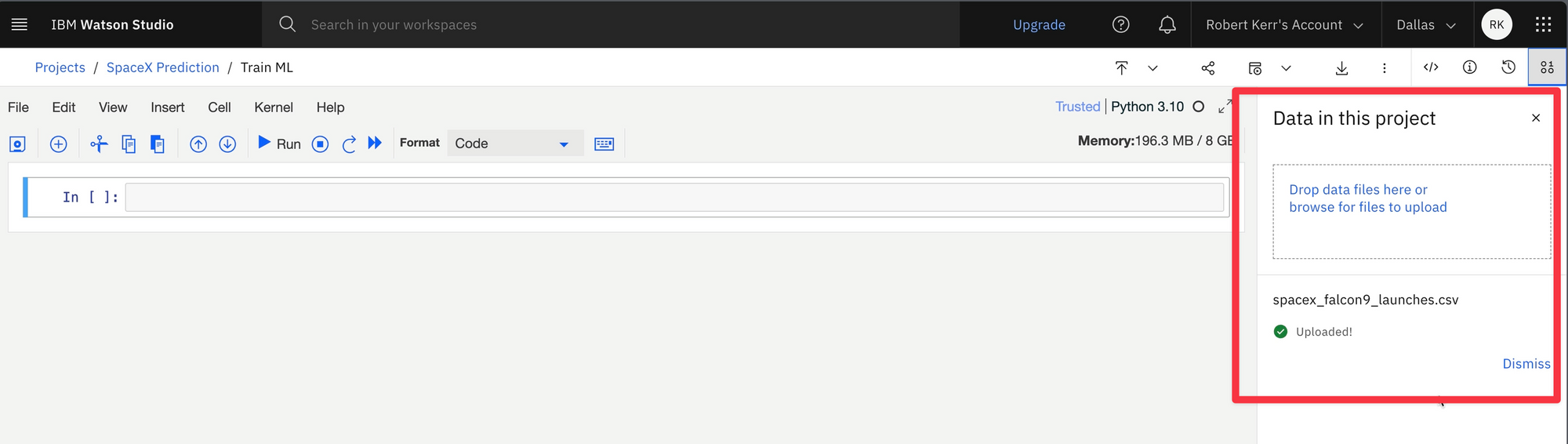 The data source I'm using is a table of SpaceX Falcon 9 launches. The data shows each launch, various metrics, such as the payload weight, which rocket was used, etc. The target variable is whether the launch was successful or not. The machine learning model will be trained to predict the success of future launches based on these input variables.